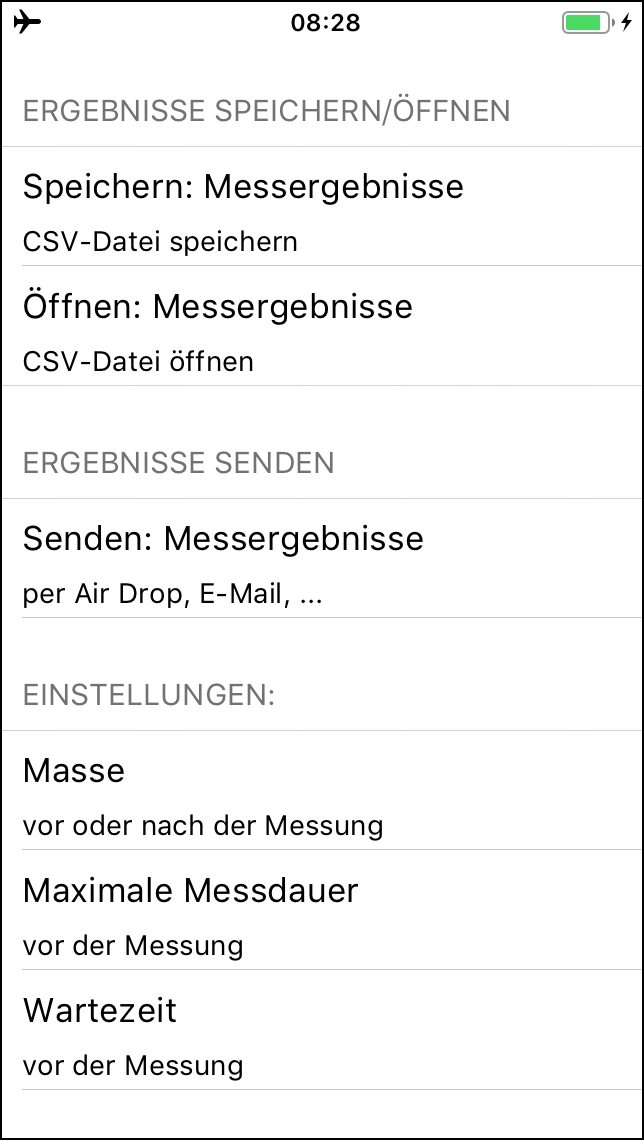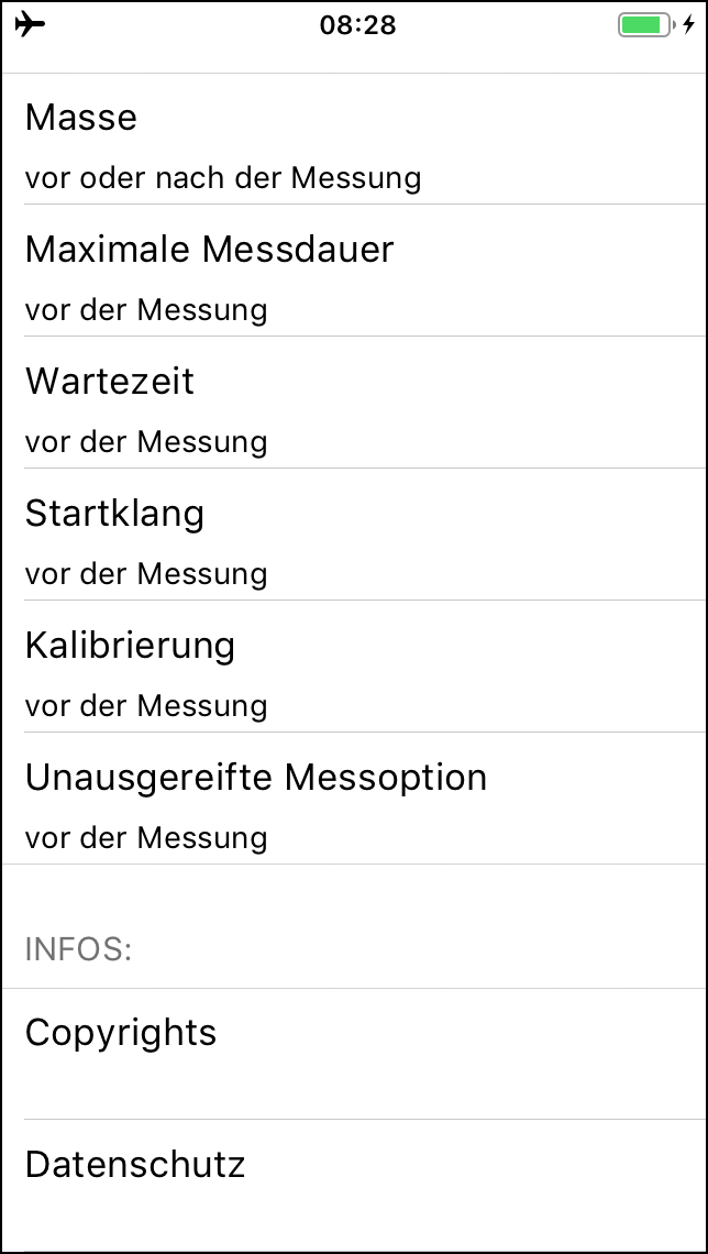 Für iOS: Ausnahme: Bei Betätigen der Buttons "Tipps: Experimente" bzw. "Durchführung/Auswertung" startet der Standardbrowser und es werden PDF-Dateien der Seite https://spaichinger-schallpegelmesser.de aufgerufen.