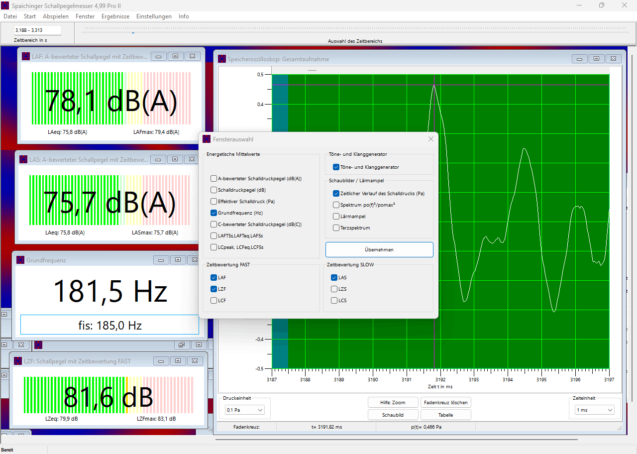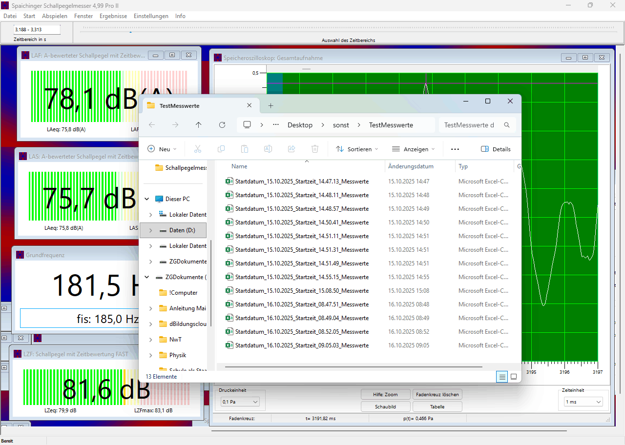 Mithilfe der Pro- und Pro-II-Version des Spaichinger Schallpegelmessers können Sie eine Vielzahl von Messgrößen erfassen: