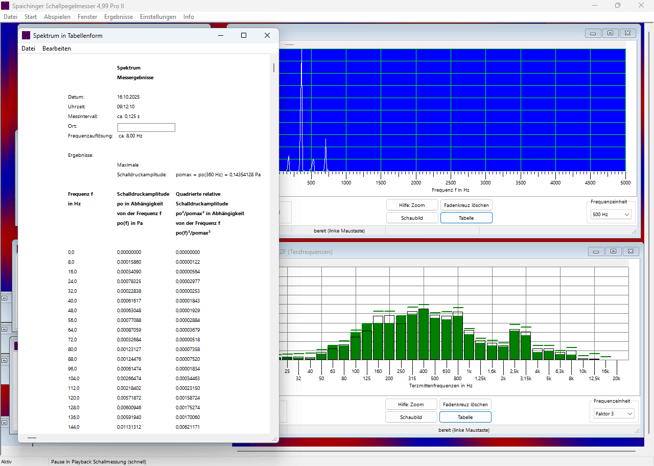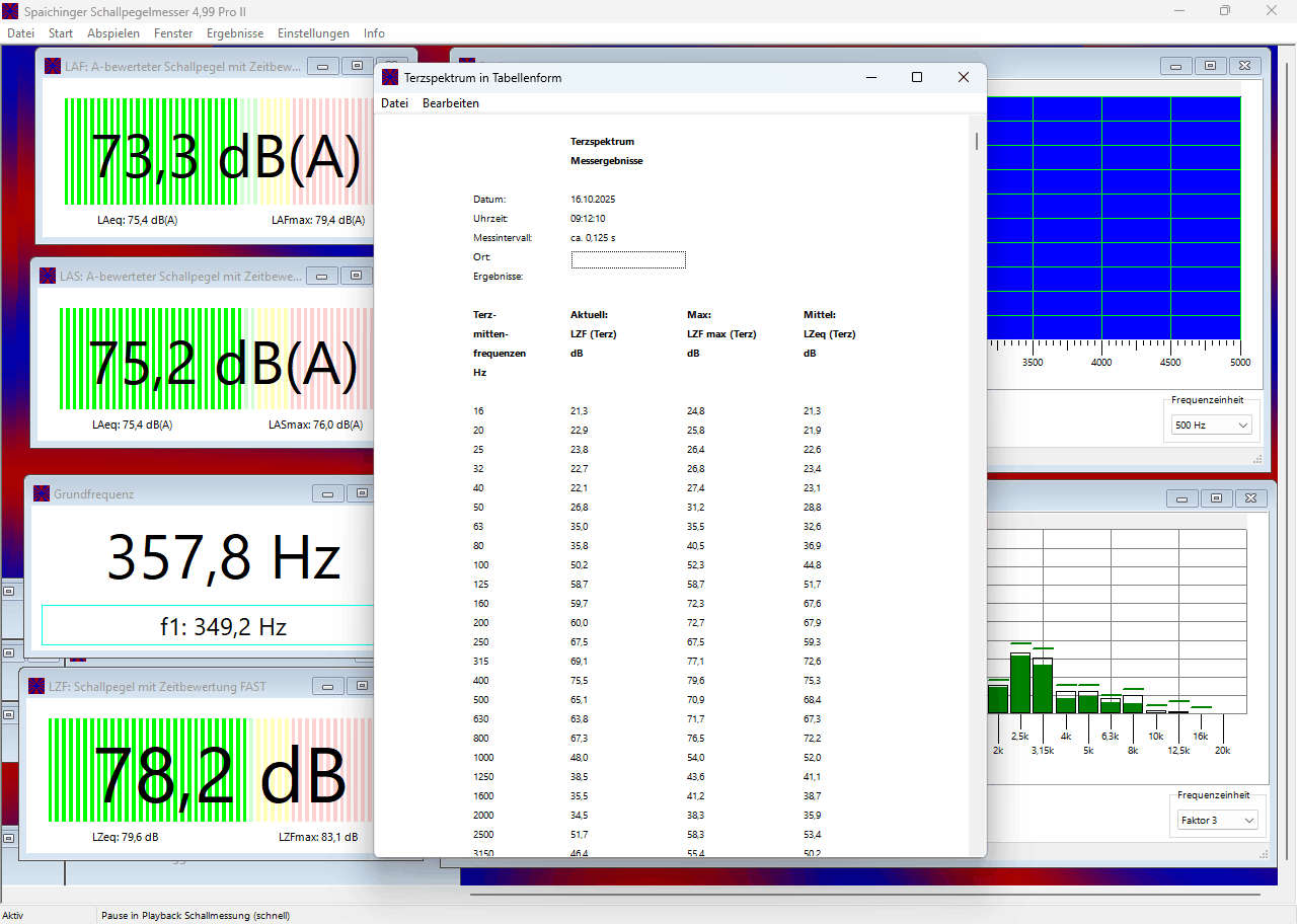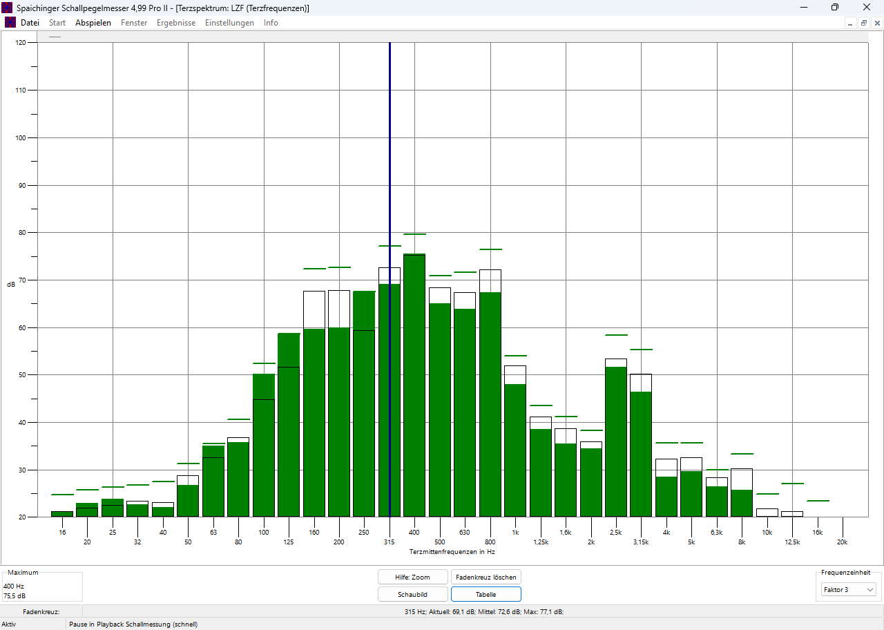 Mit der Pro-II-Version des „Spaichinger Schallpegelmessers“ können Sie zusätzlich das Terzspektrum (Klasse-1-Terzspektrum nach DIN EN 61260-1) messen: